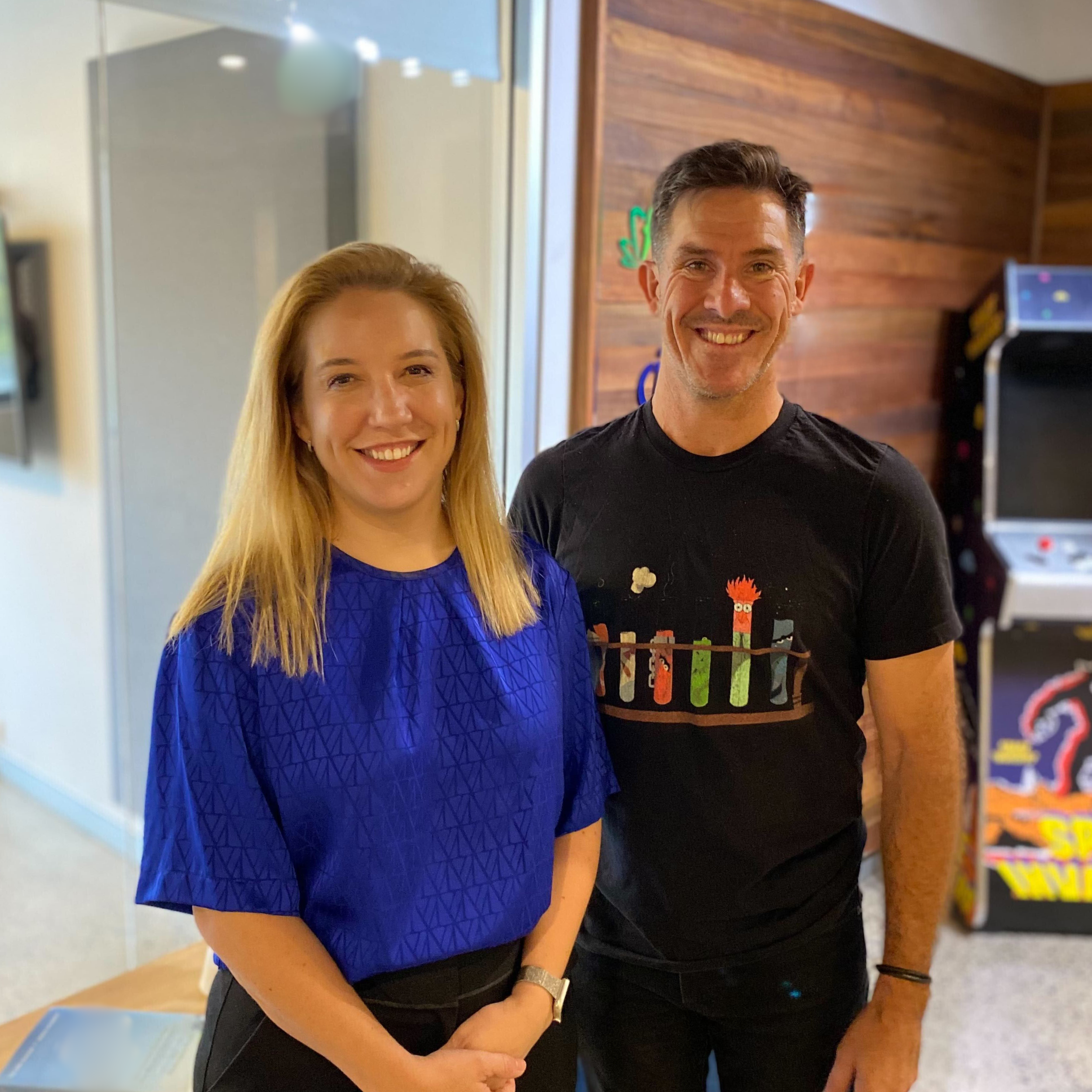 Pictured: Flexischools incoming CEO, Rachel Debeck, with founder and outgoing managing director, Geoff Austen